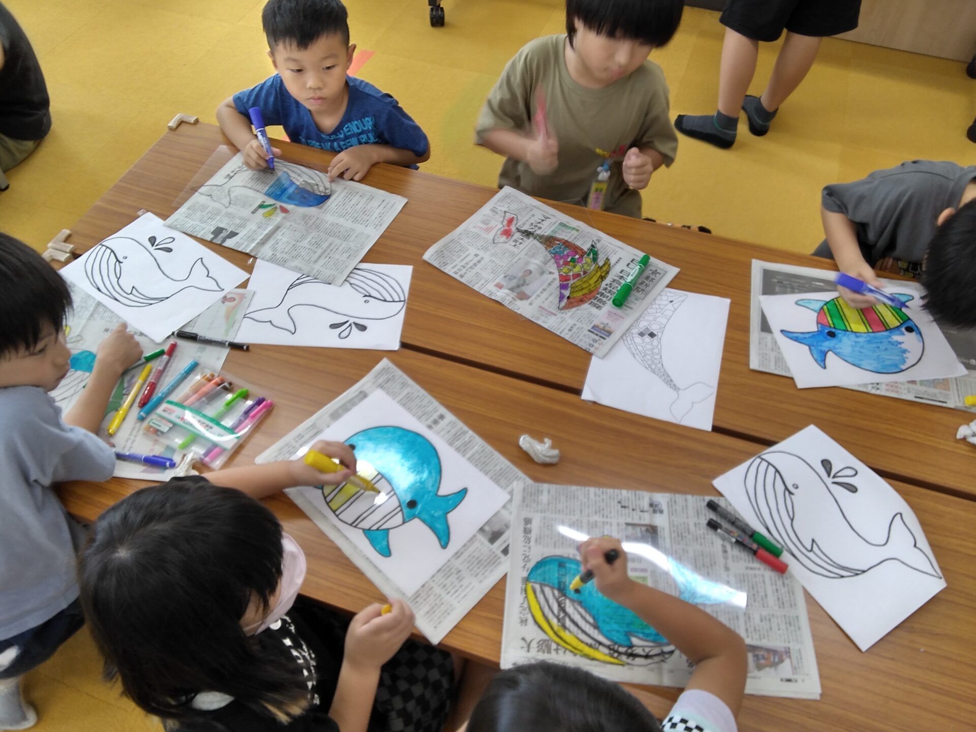 子どもたちは好きなくじらを選んで、自分だけのくじらを創ります🐳