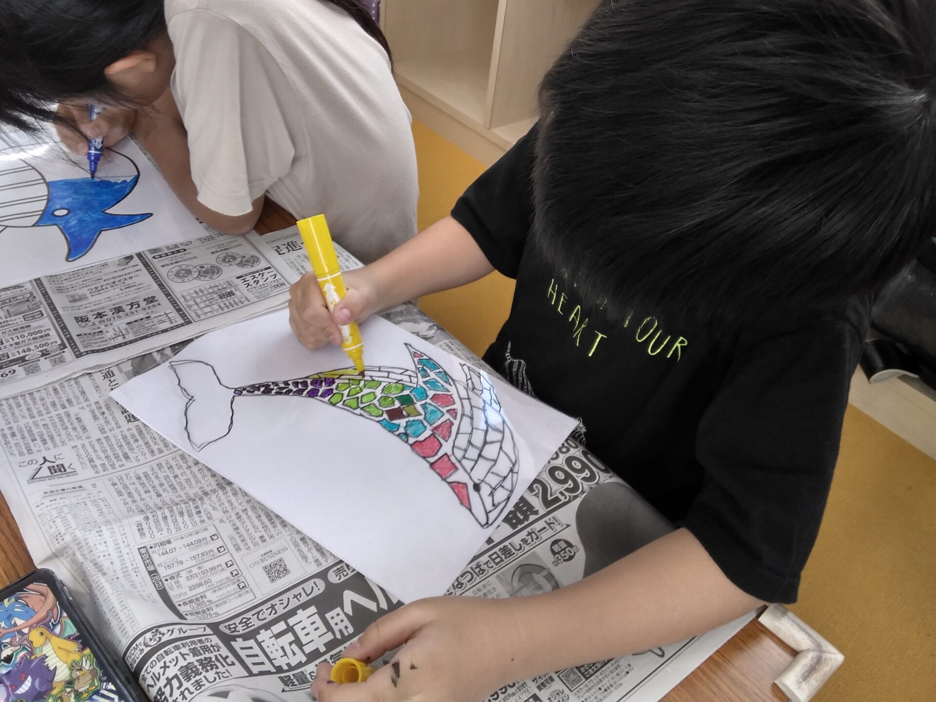 右側の子は4年生!高学年ともなると、‟きれいにぬる”という部分にオリジナルの創造性がプラスされます✨
