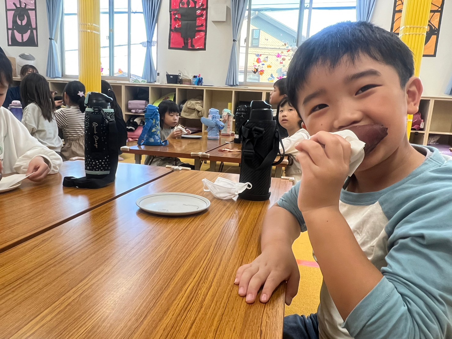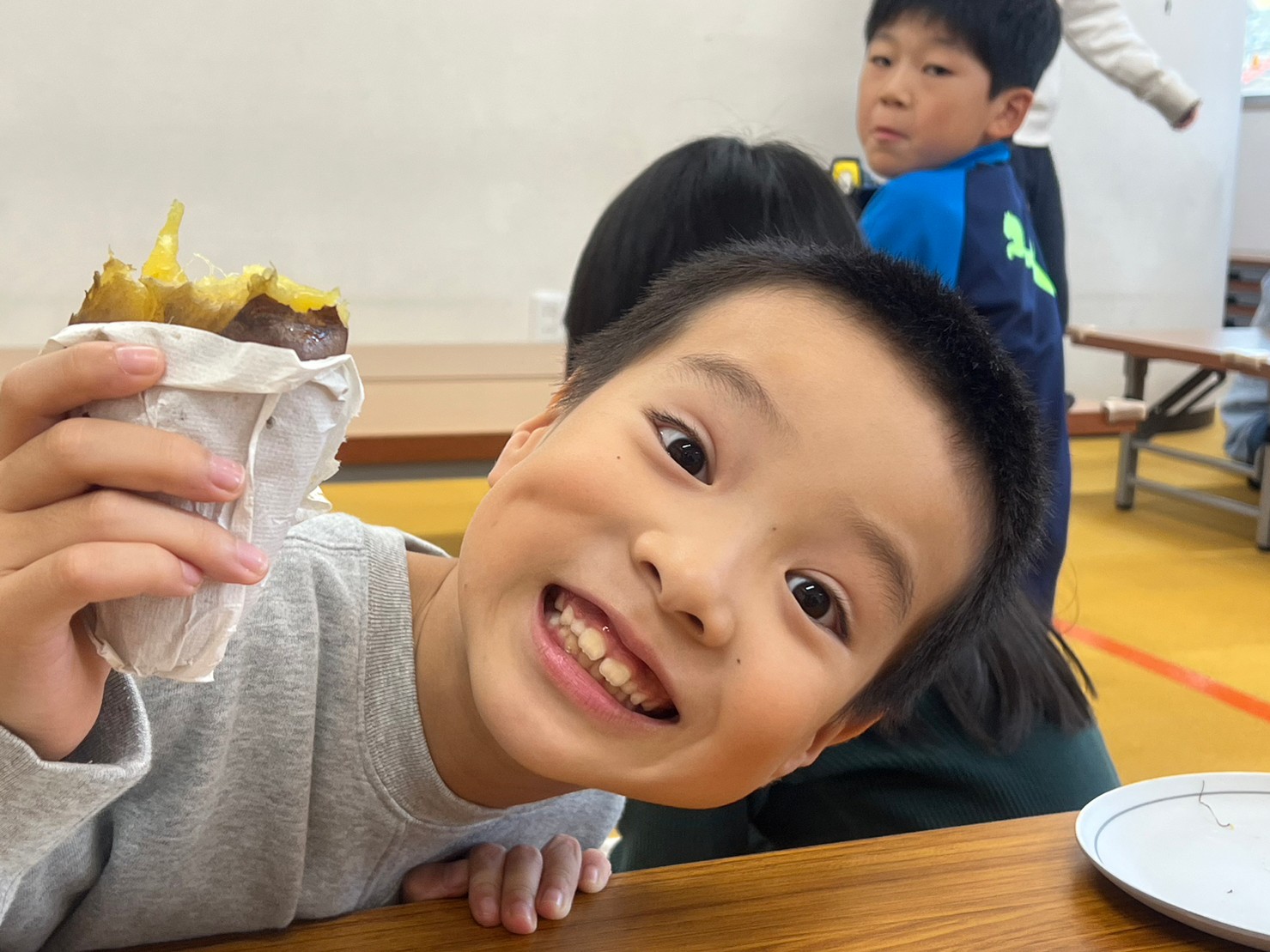 おっきい!おっきいお芋をもらえて喜びの笑顔がこぼれています🤗
