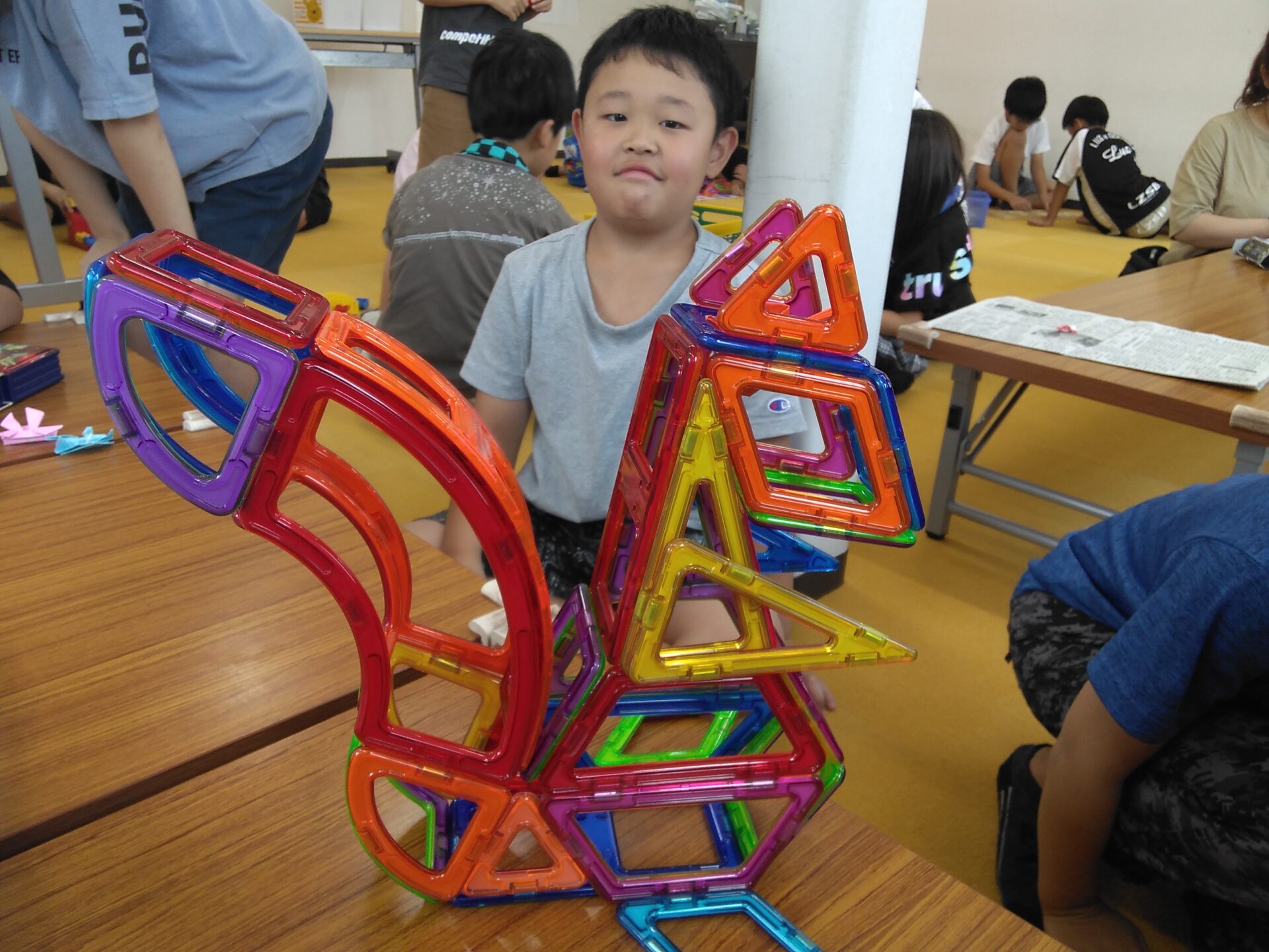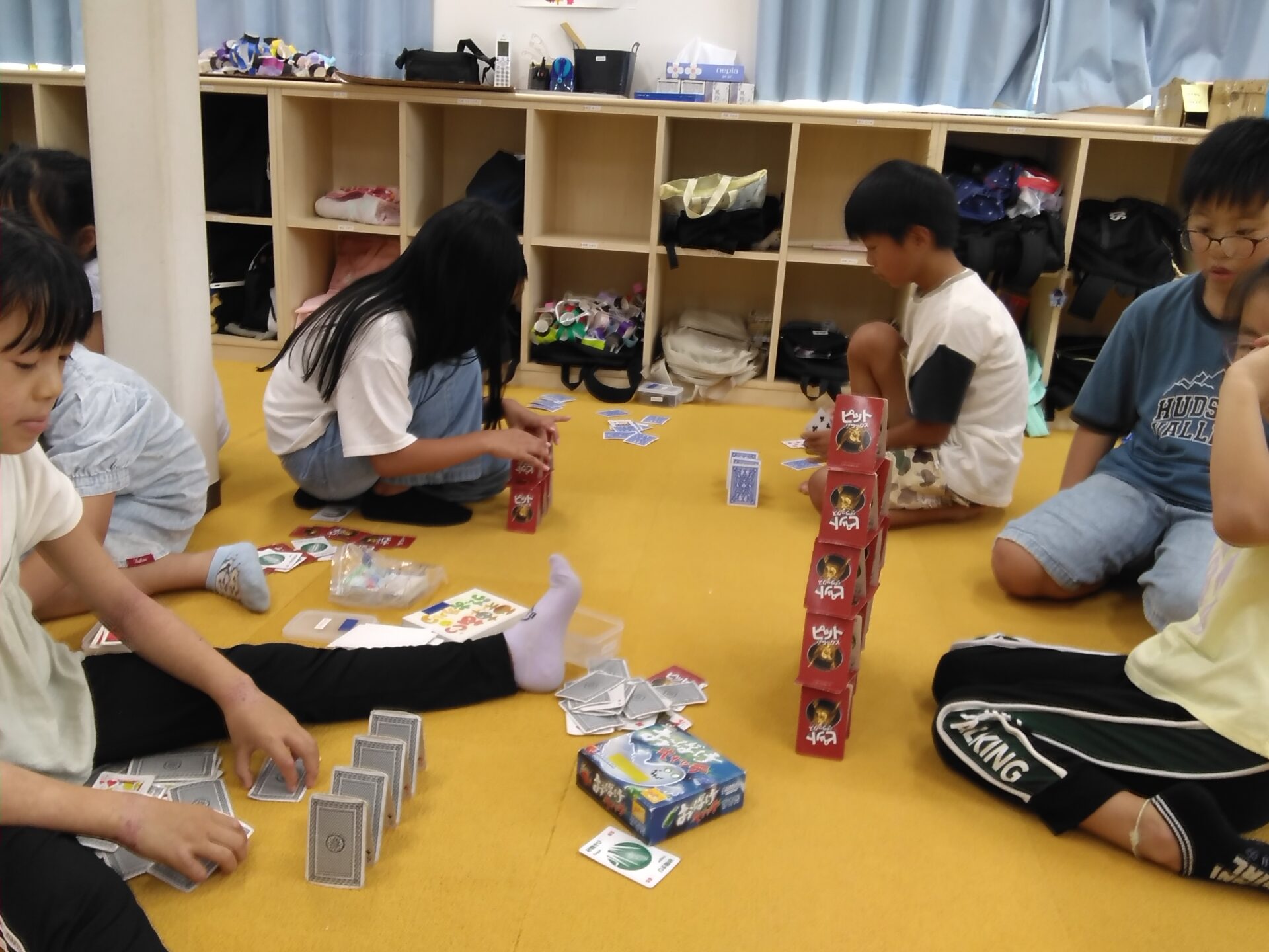 トランプだけでは足りず、カードらしきものは全部使ってチャレンジしていました👍