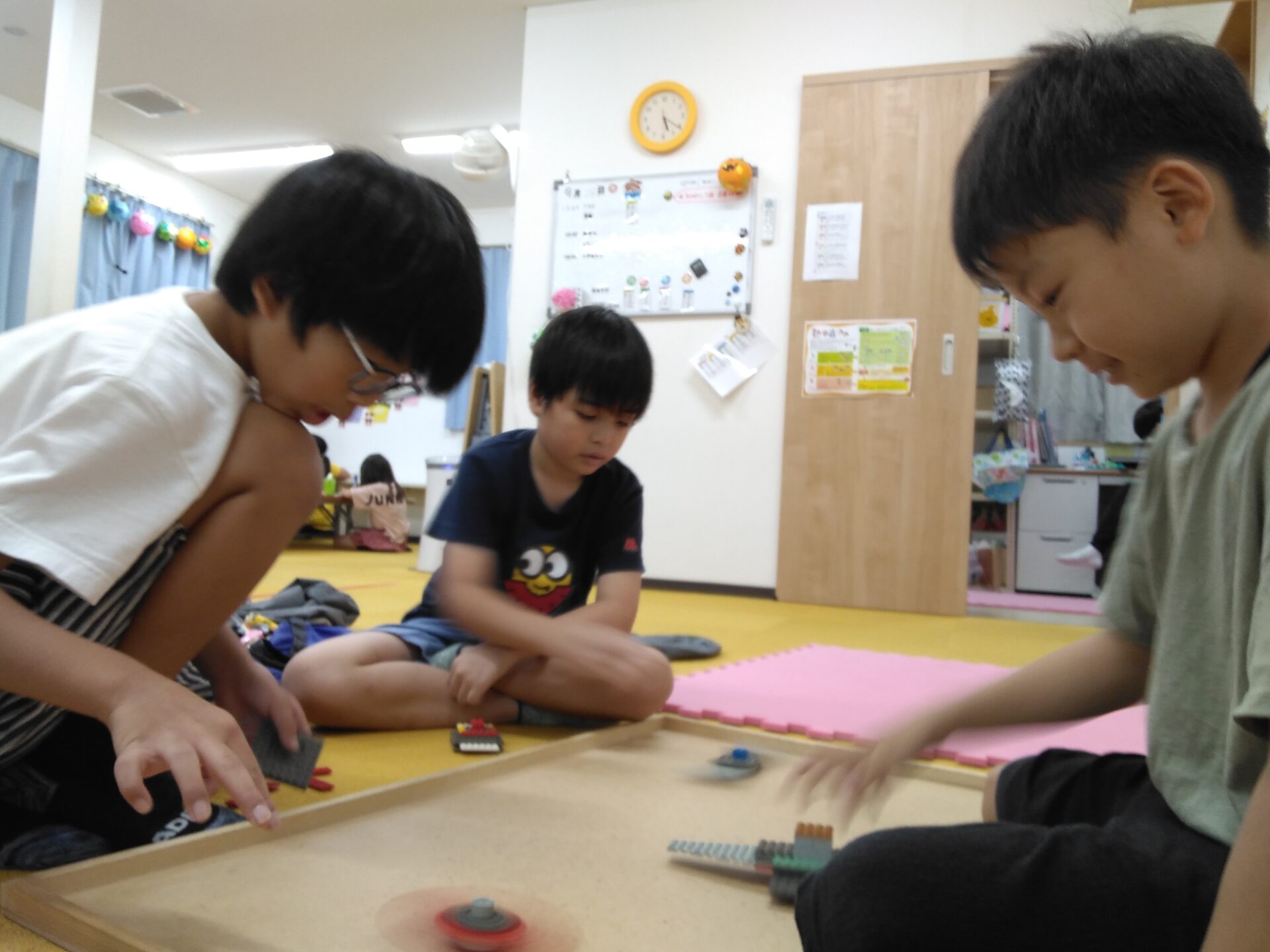 夏休みが終わってからは、レゴブロックでこまを作って遊ぶ子が増えました~