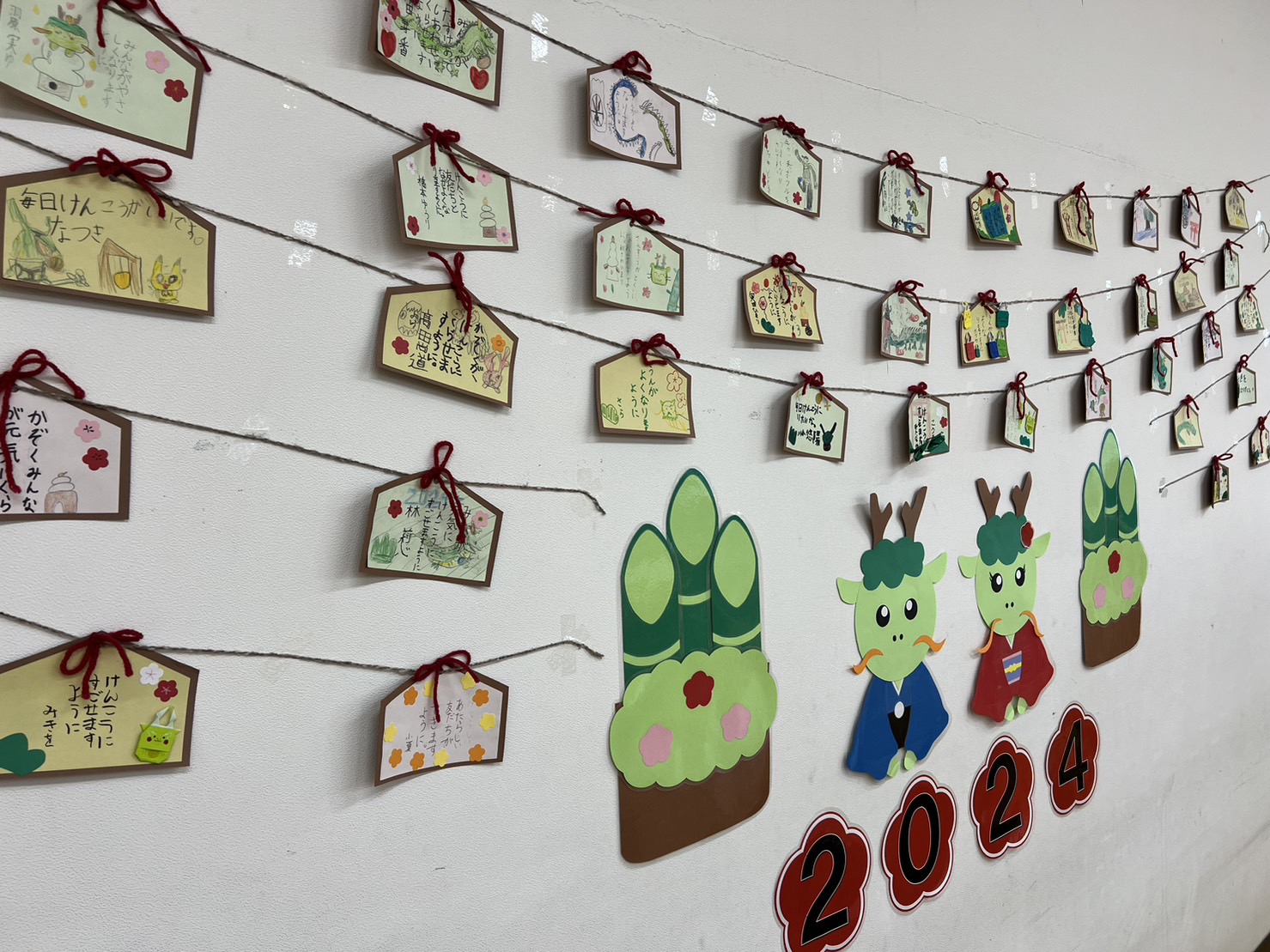 23.12.28 ブログ 壁面製作『絵馬』🐉 1月28日(木)に壁面製作として『絵馬』を作りました。 製作は月に2回以上はしているので、戸惑うことなくサクサク進められるようになってきました。 子ども達の願い事がとっても可愛いです💗 一覧へ戻る