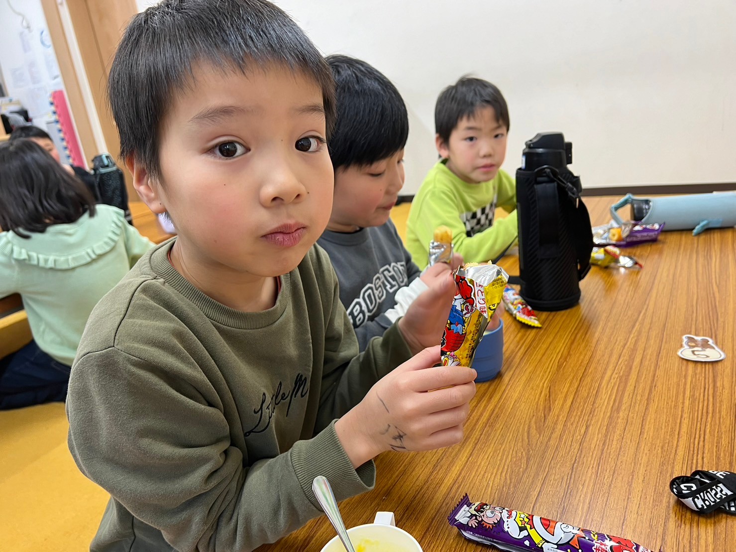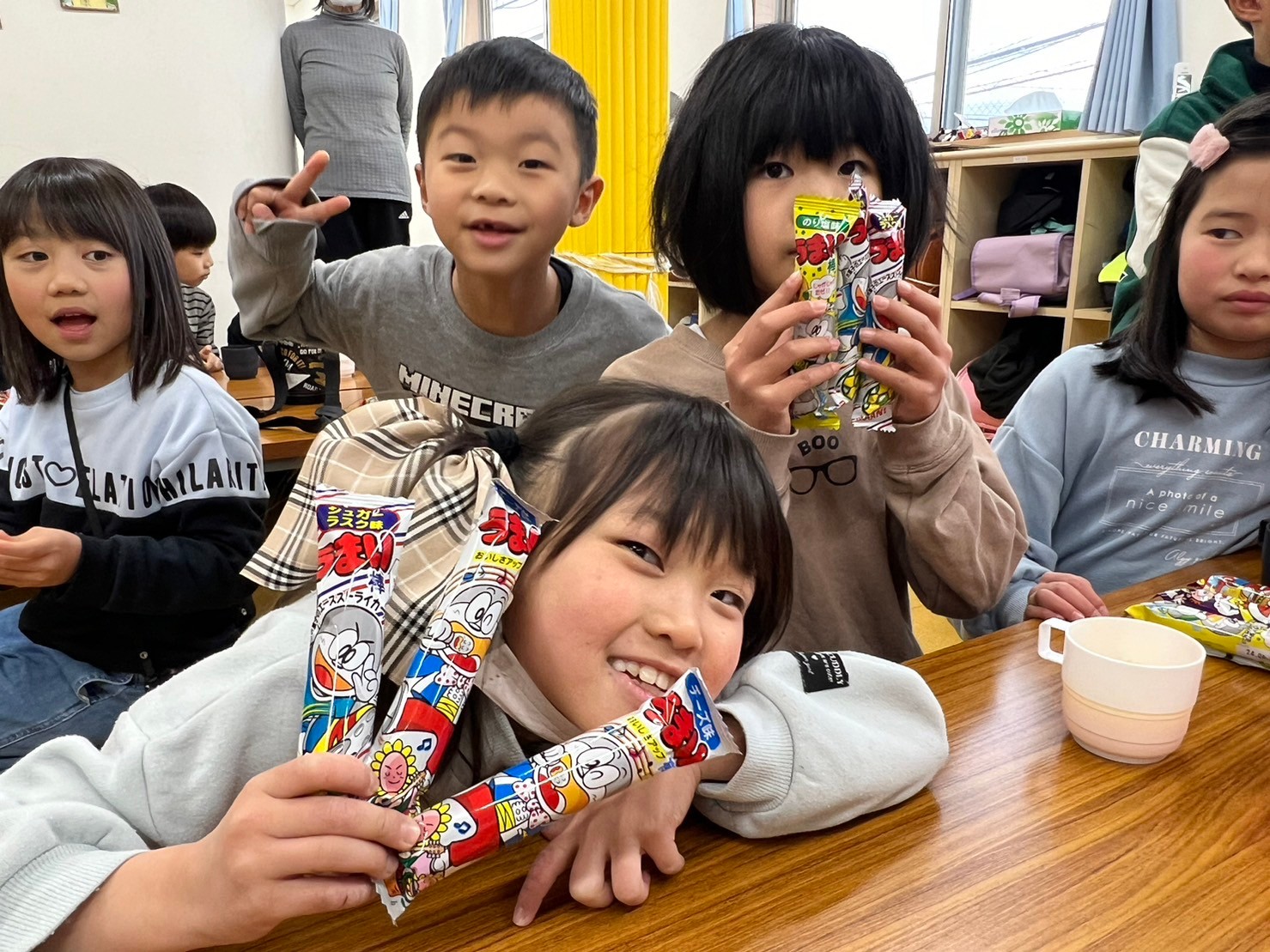 『今日はうまい棒パーティーやでぇ~』と伝えると、『キャー』と歓声が沸きました(笑)