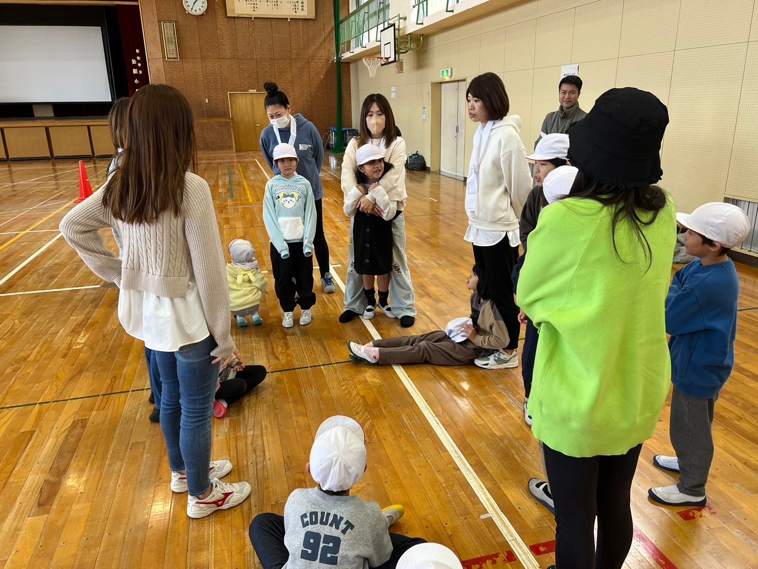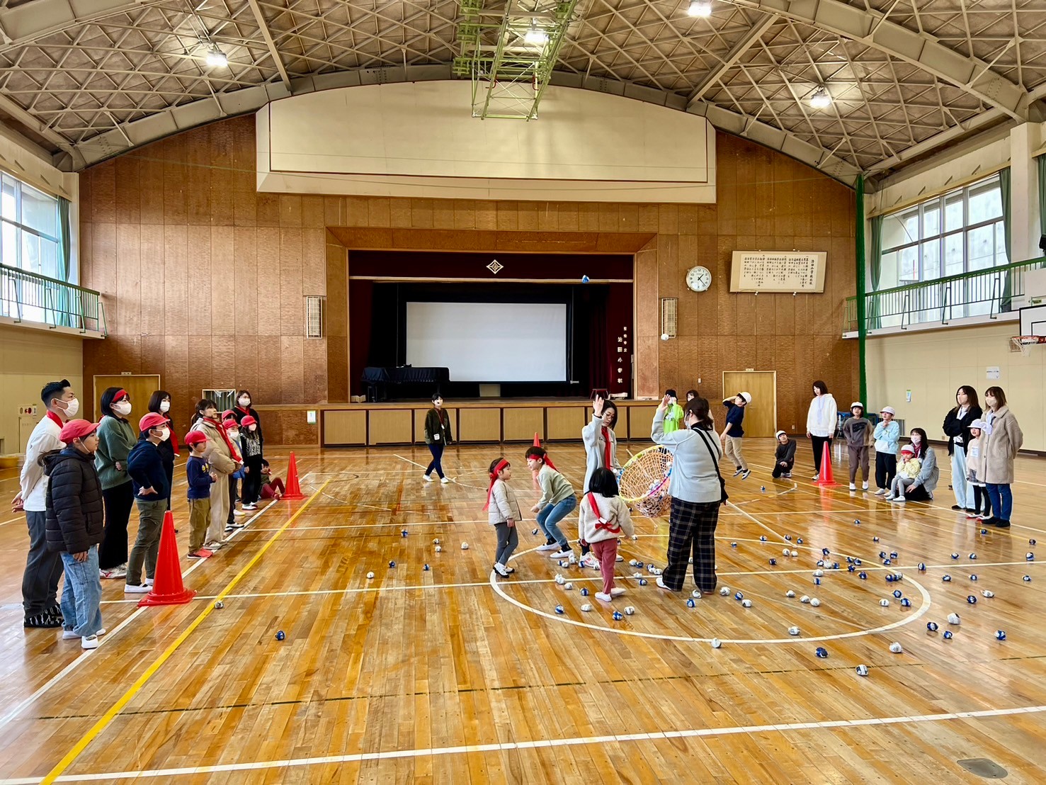 ”お玉でボール運び”が終わると、保護者さんが待っています✨