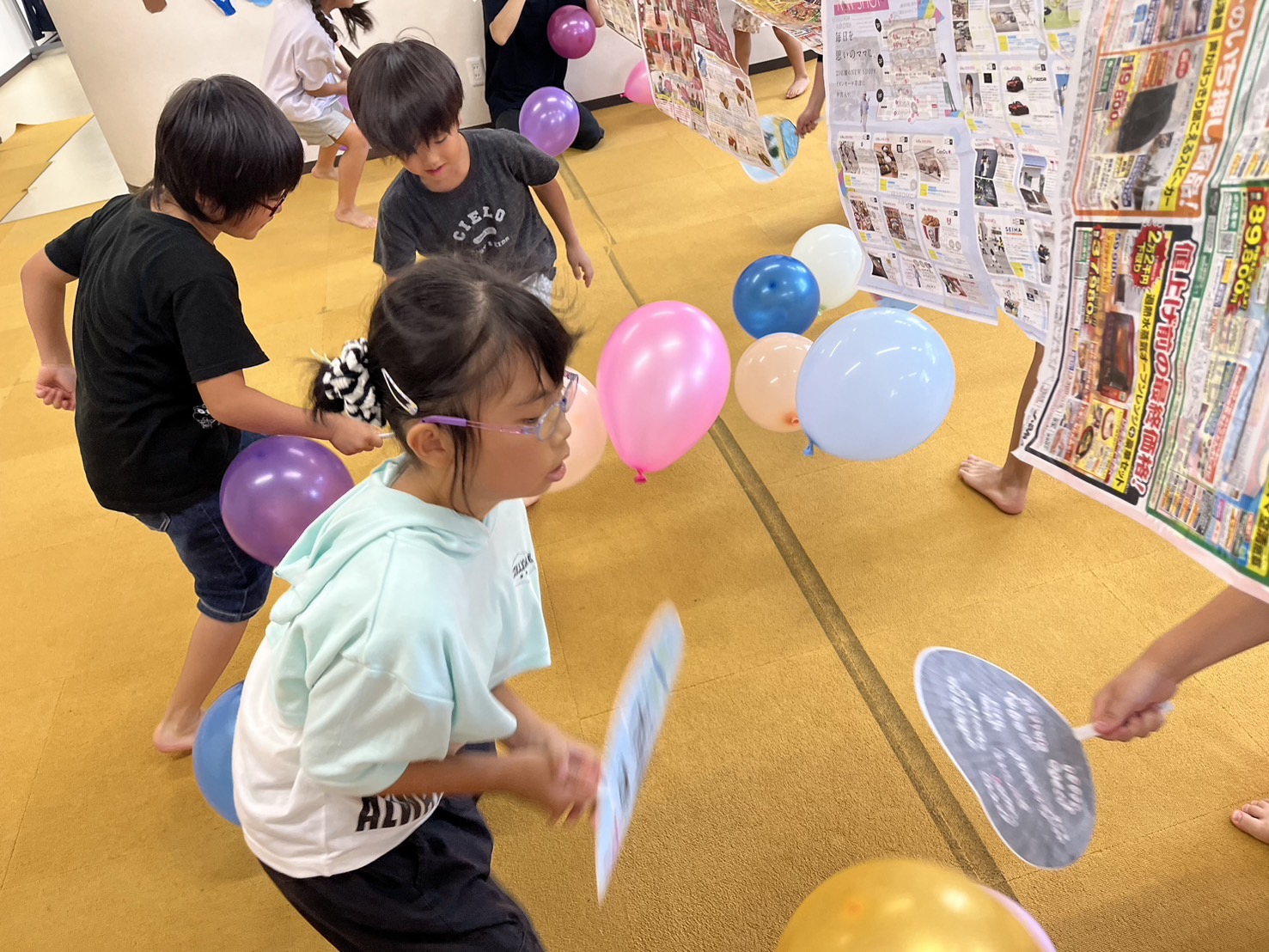 24.09.01 ブログ みんな遊び 8月30日(金)は元々は夏祭りの予定でしたが、台風の影響で延期に💦 子ども達から「みんな遊びがしたい😊」と提案があり、急遽みんな遊びをしました✨ 自分たちで作ったうちわを使って 風船を相手の陣地にたくさん入れた方が勝ち❕❕ 一覧へ戻る