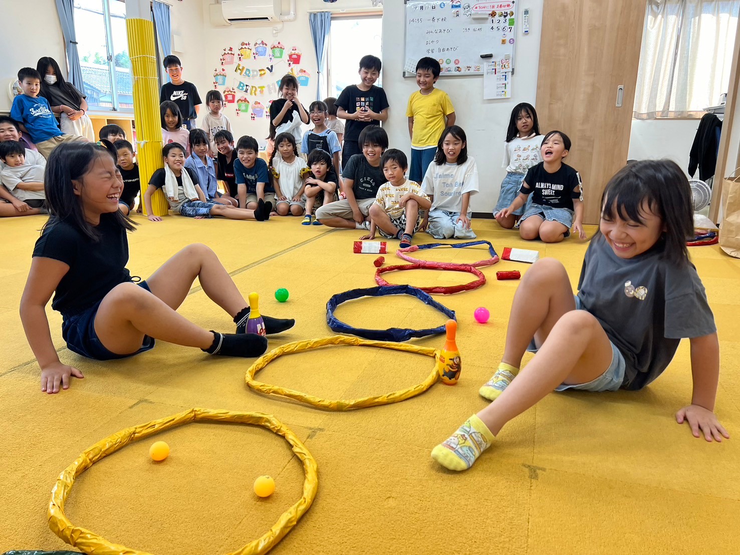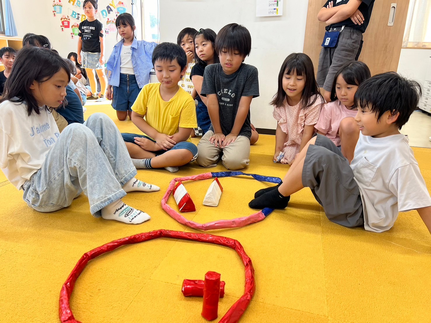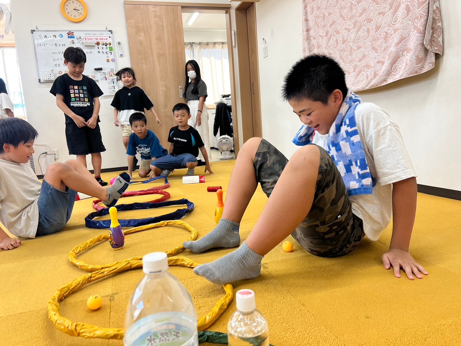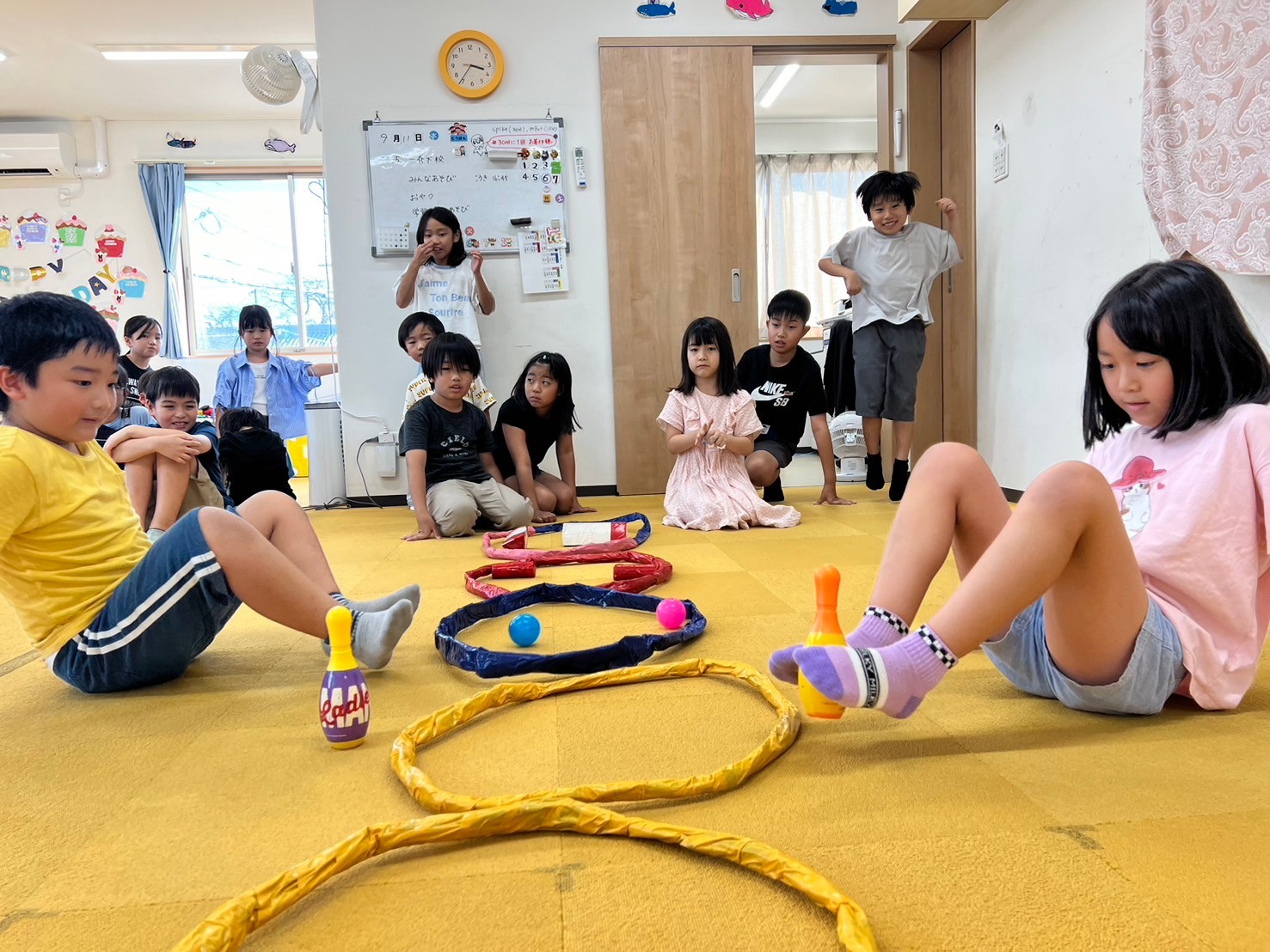 9月11日(水)にみんな遊びとして『足だけ使って障害物リレー』をしました。
