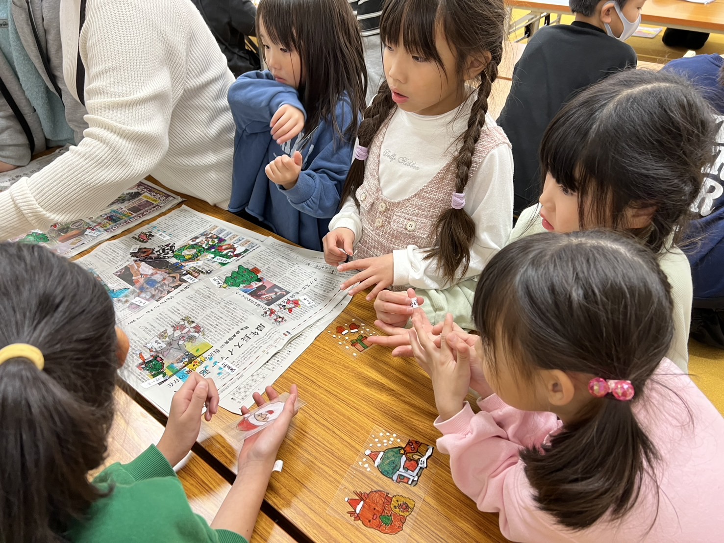 木製スティックを使って3種類のクリスマス飾りを作ってもらいました。