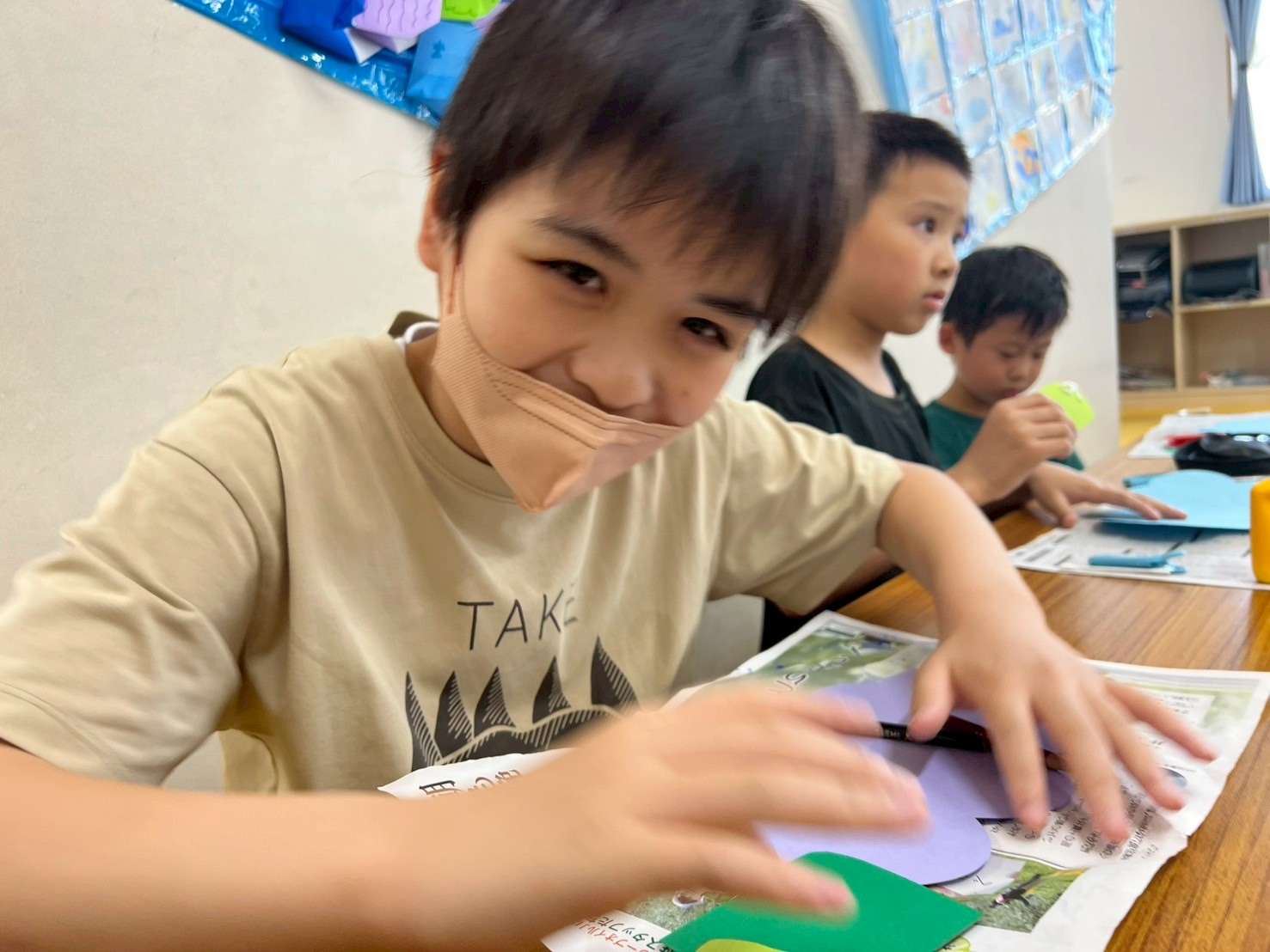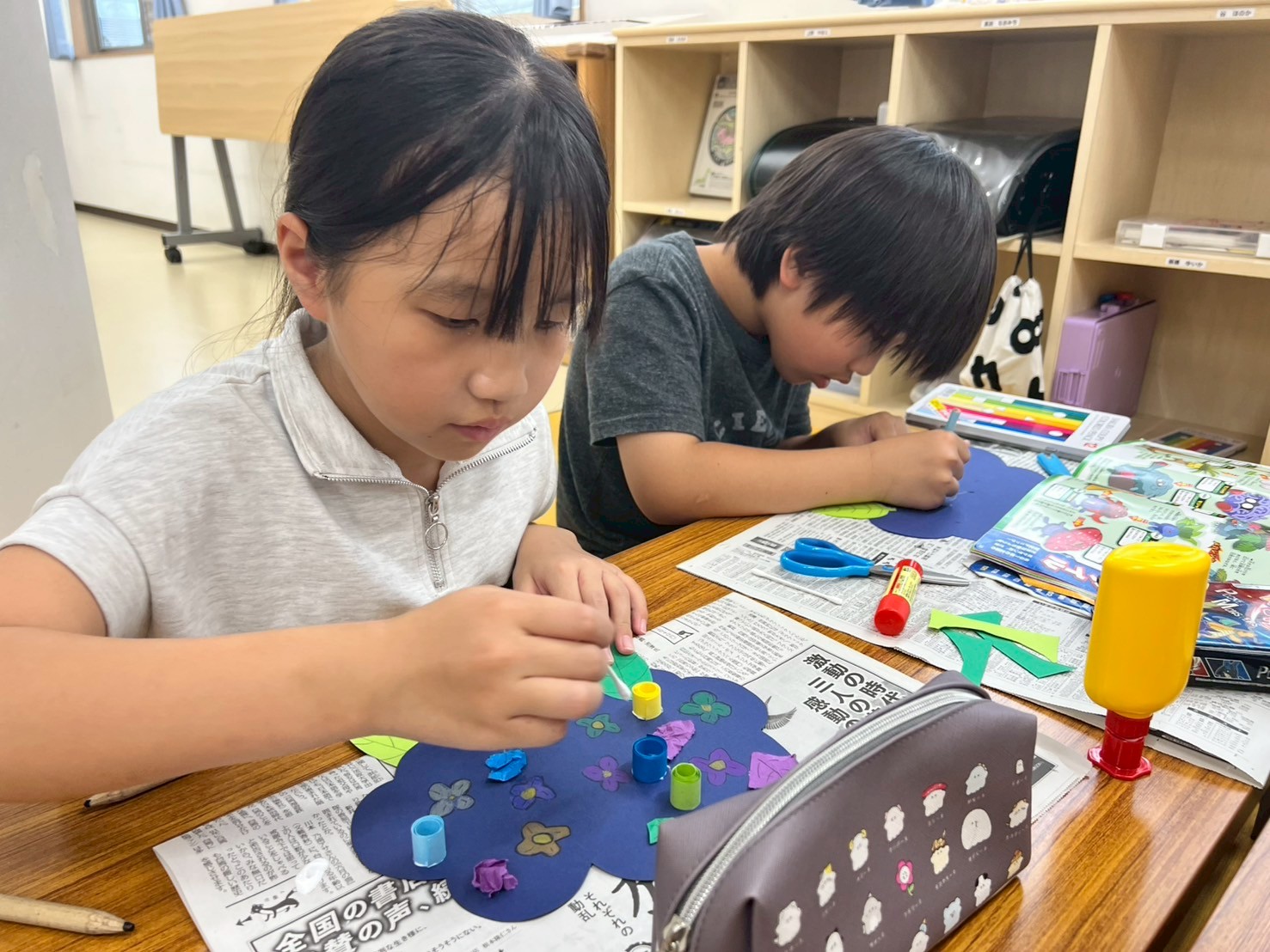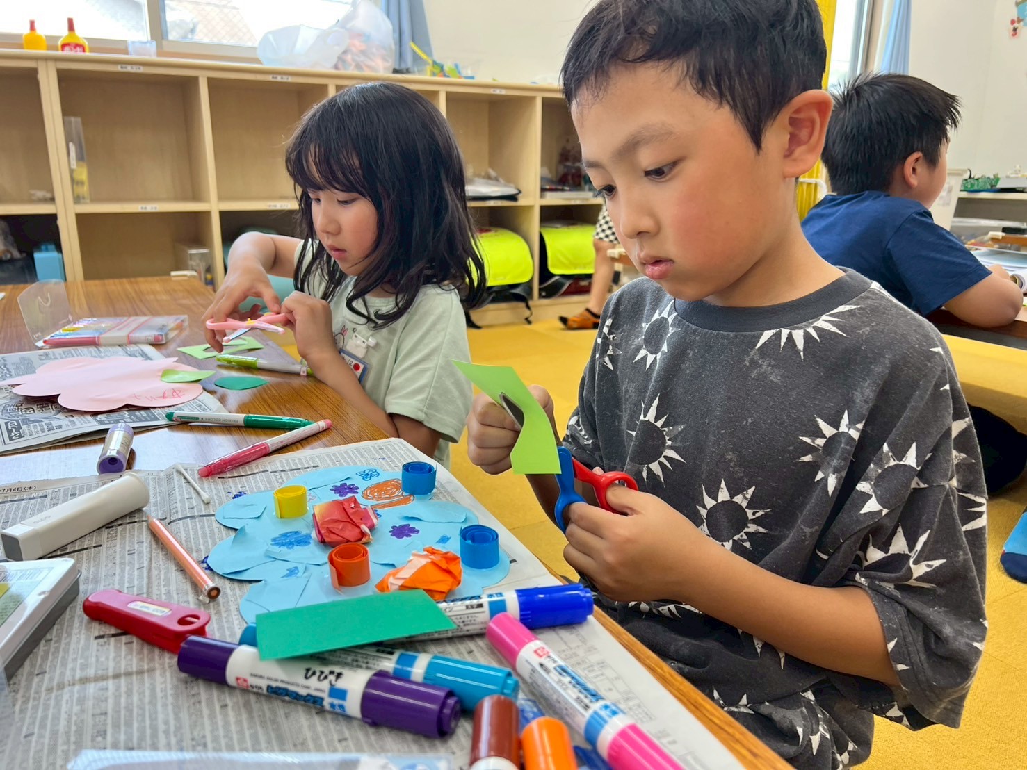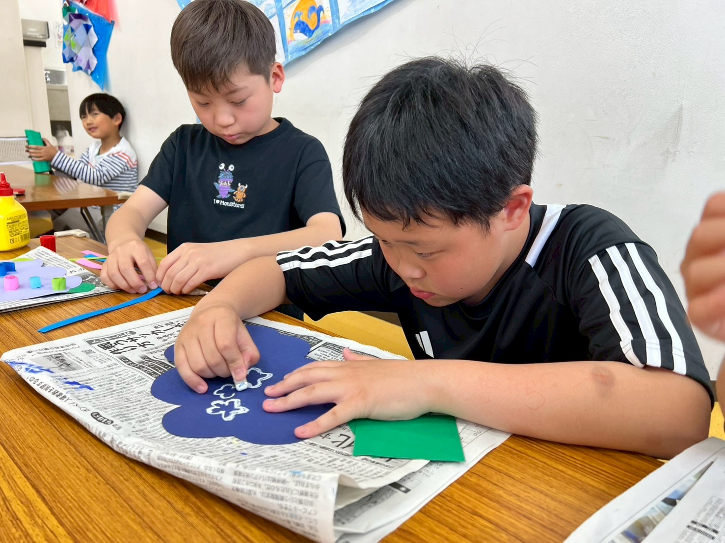 真剣に悩む子や楽しみながら作る子・感覚で作る子とさまざまでしたが、1人1人の個性豊かな”あじさい”が完成しました✨
