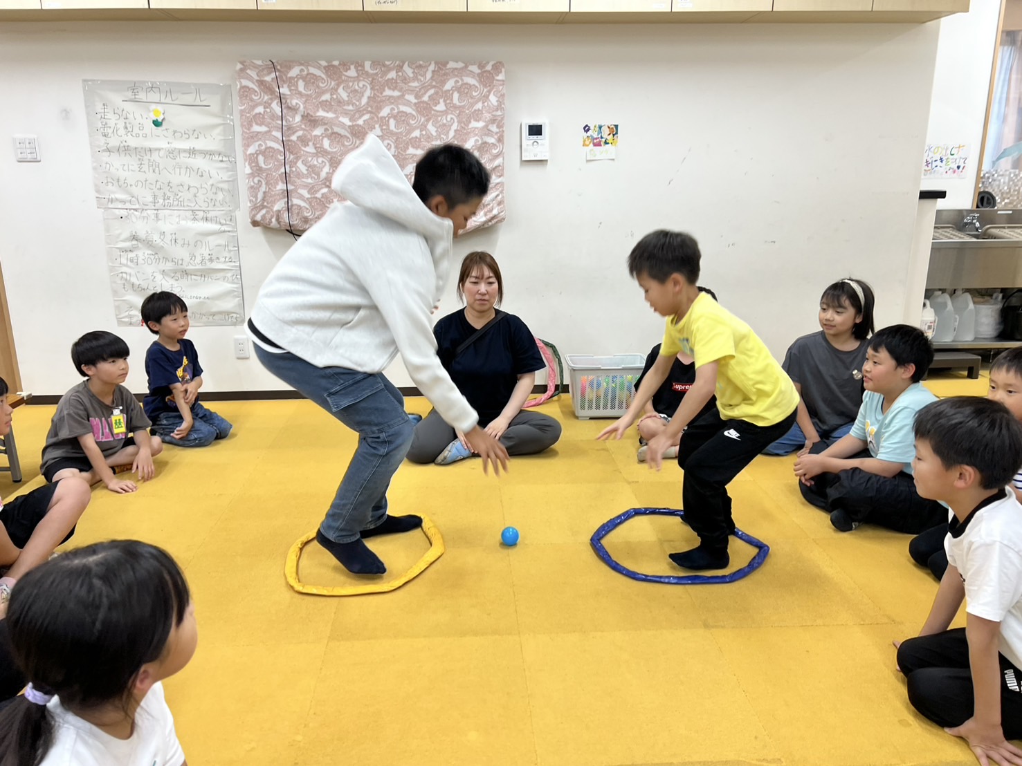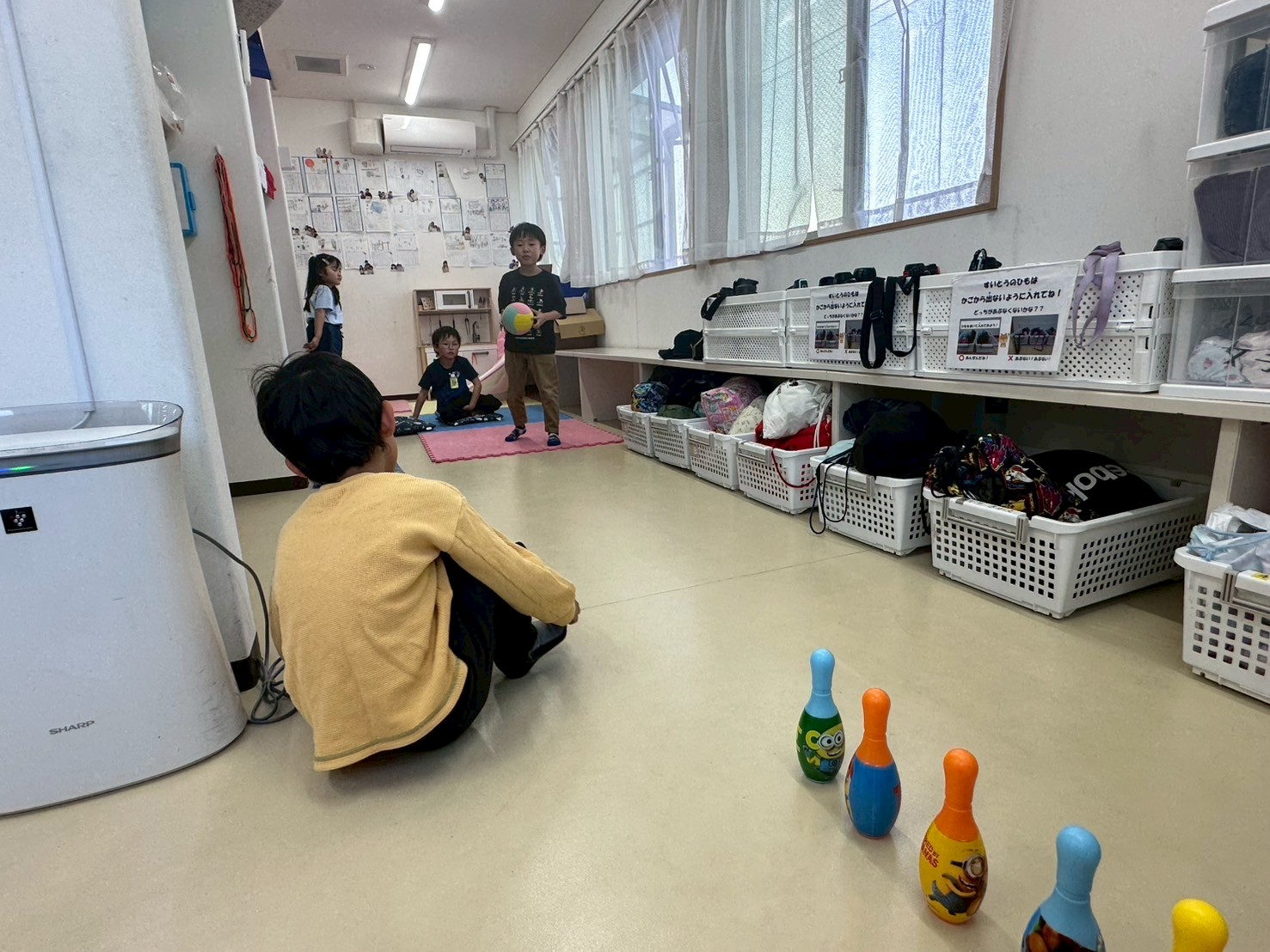 室内遊びでは、上級生が大作を作っていると1年生も工作にはまったり、室内でも体が動かせるボーリングや卓球。レゴなどのブロック系は男の子に人気でした。