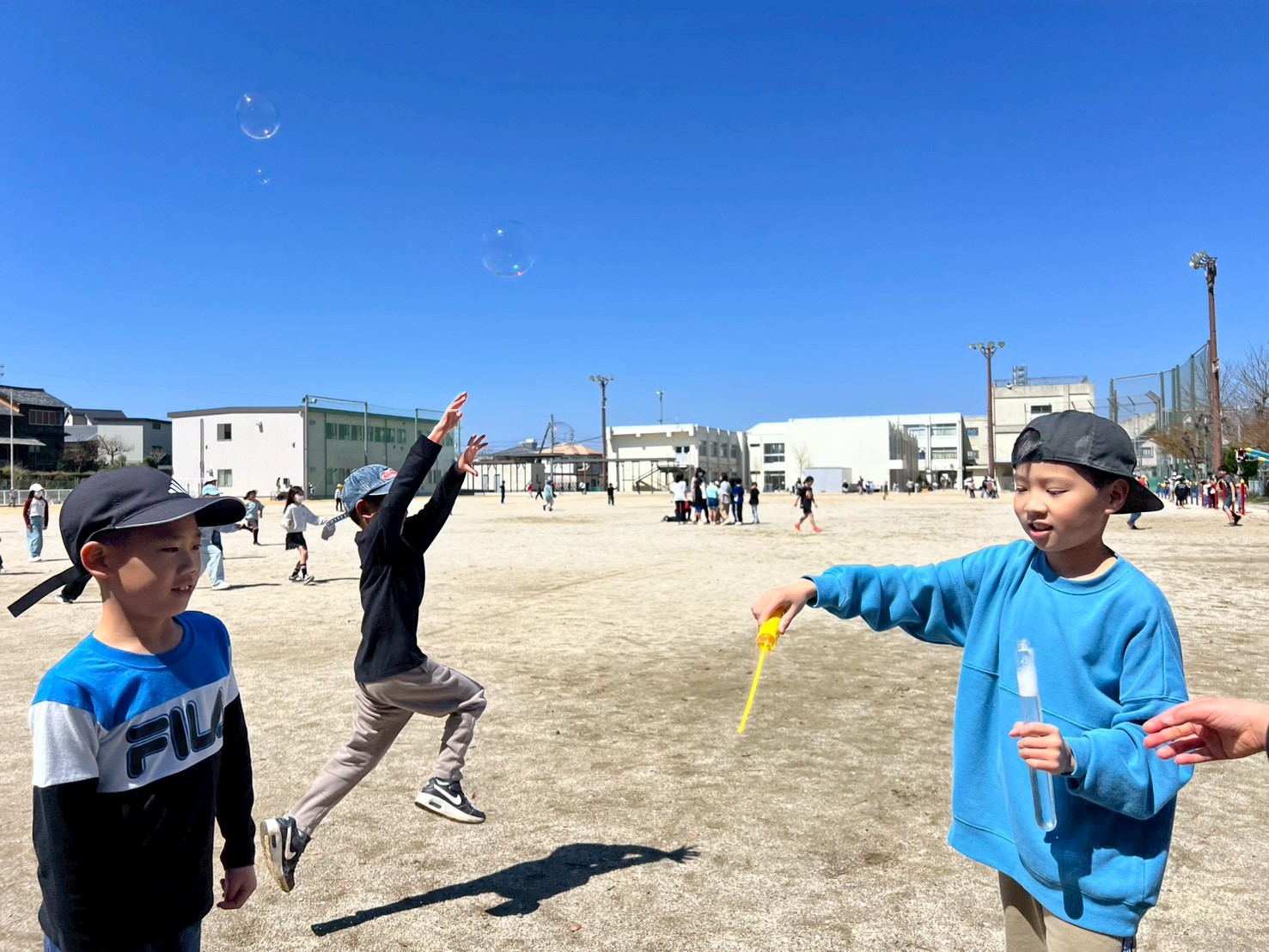 シャボン玉で遊ぶ子たちは、「おっきいのできるかな?」「いっぱい作れた!」と試行錯誤しながら楽しみました🫧