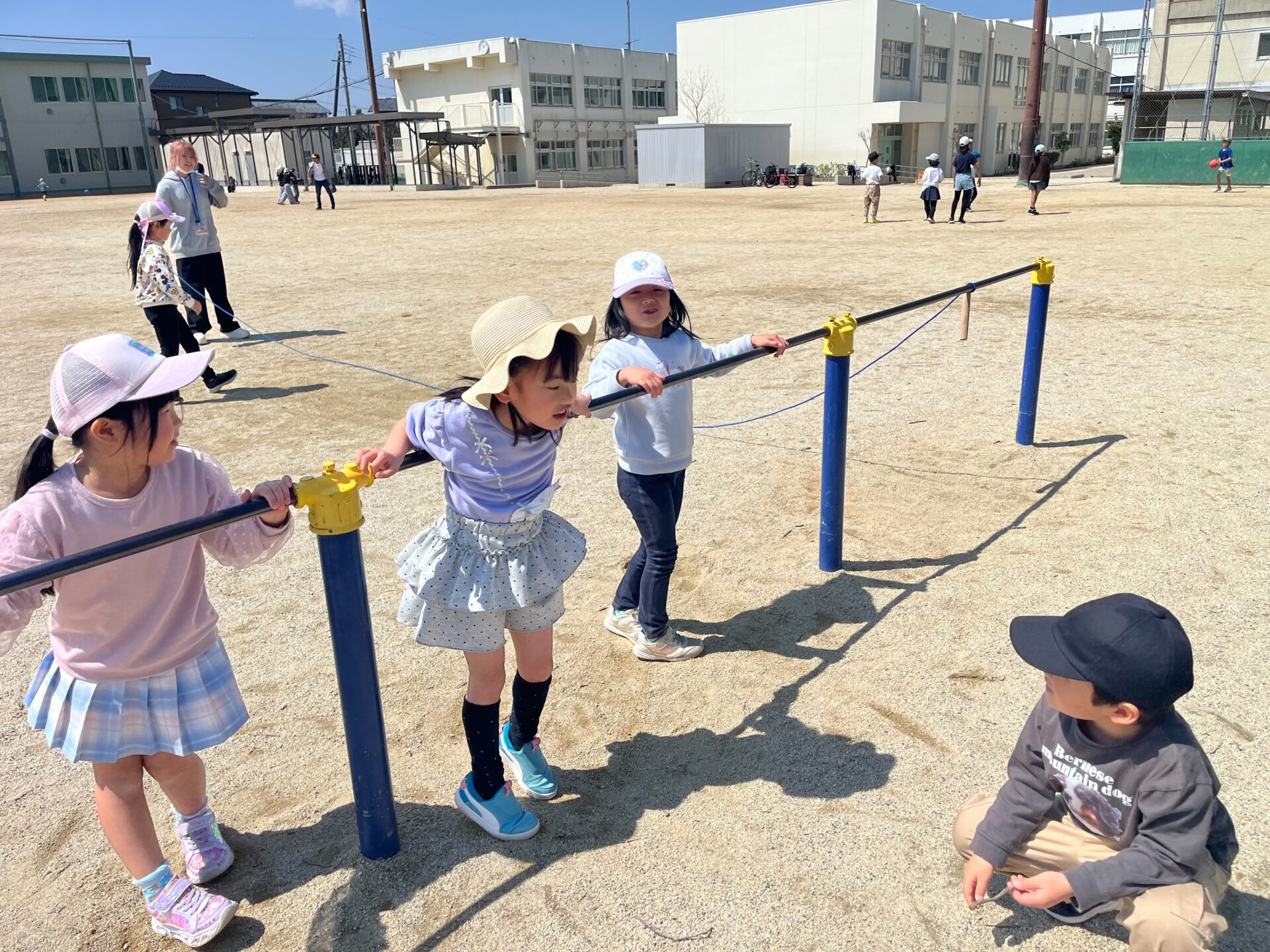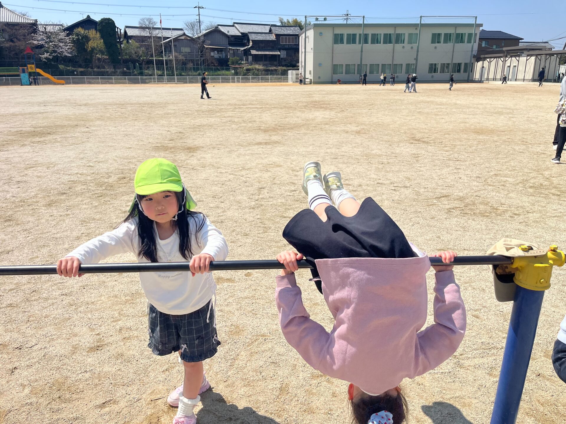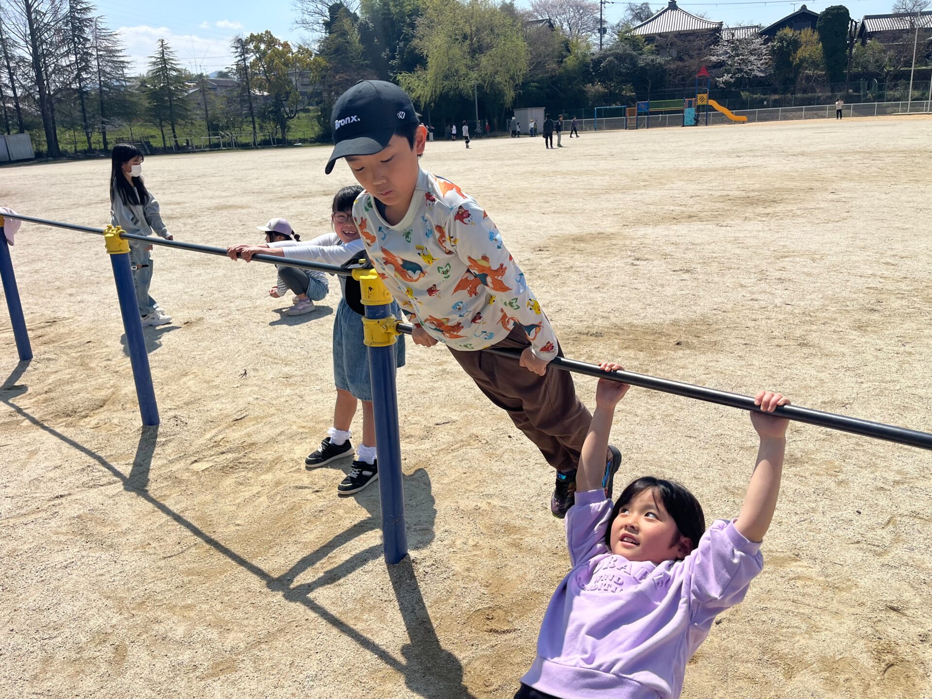 気持ちよく晴れた日に、小学校のグラウンドへ外遊びに行きました。