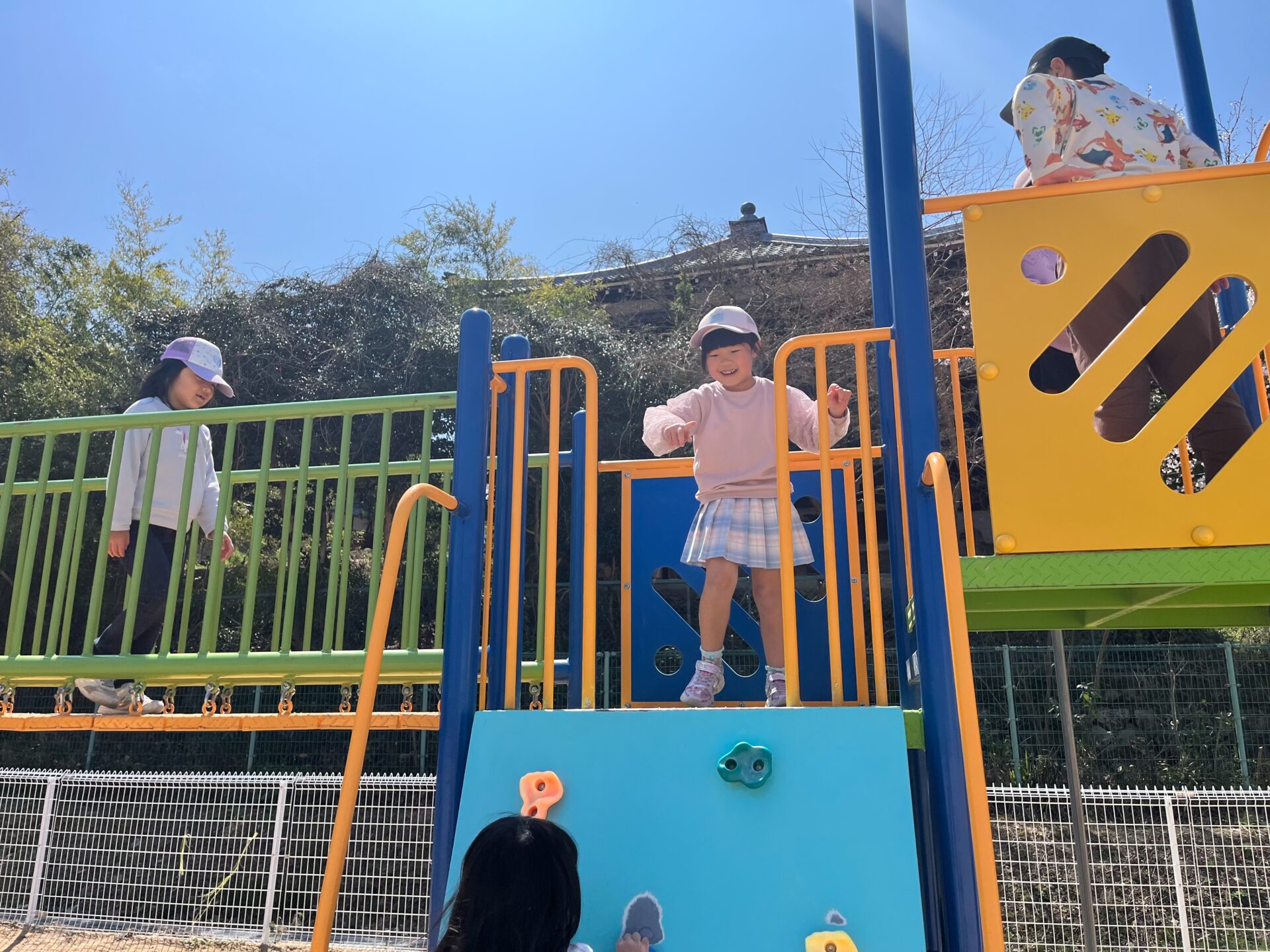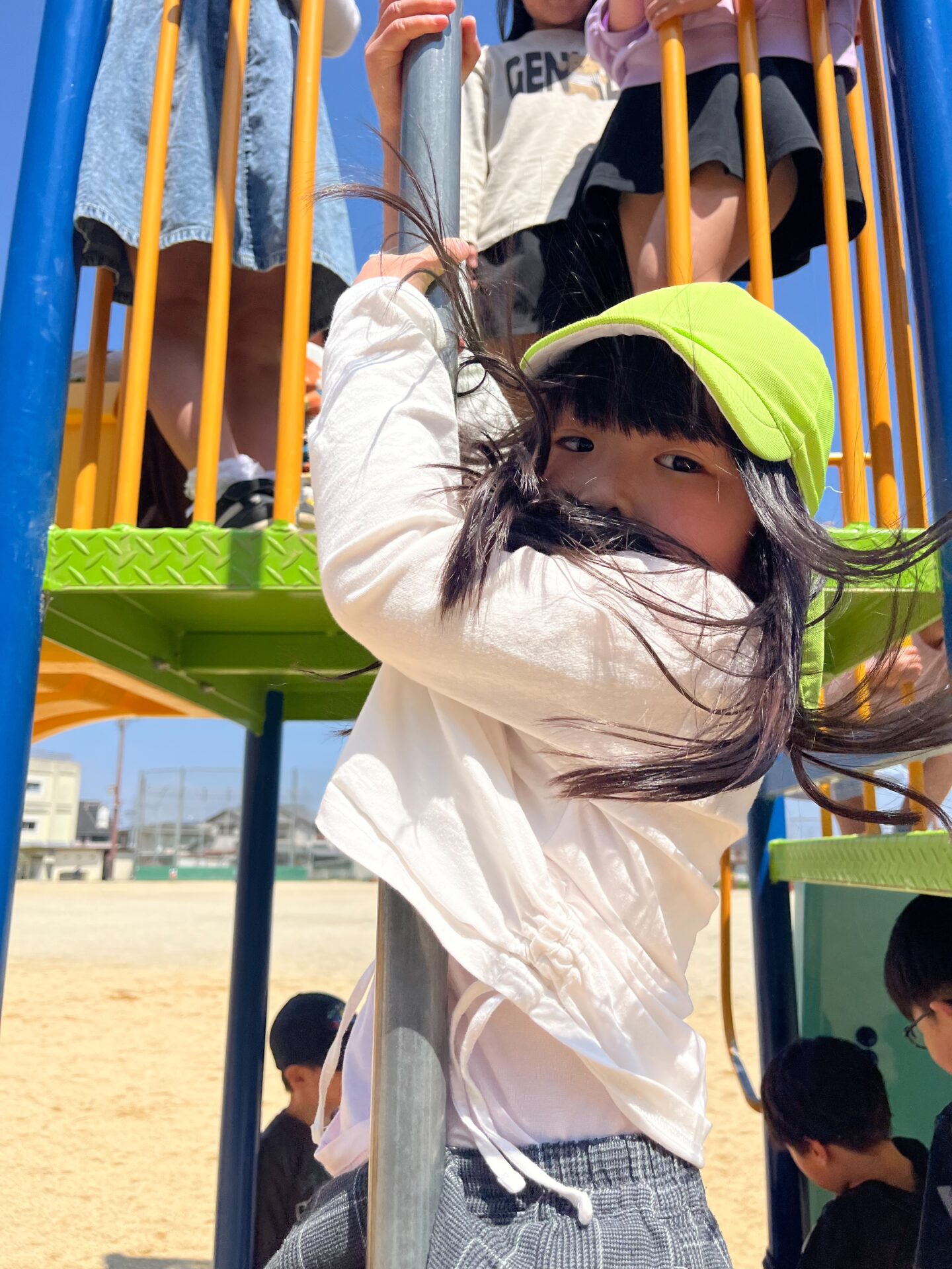 遊具では、クライミングやのぼり棒に挑戦しました。誰かひとりが始めると、「やってみたい!」と、どんどん挑戦していました。