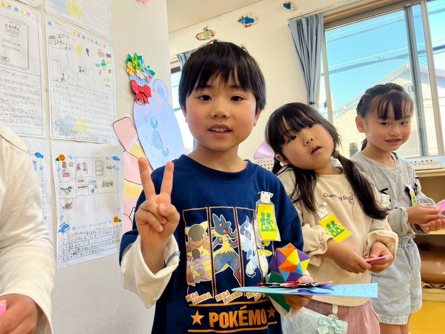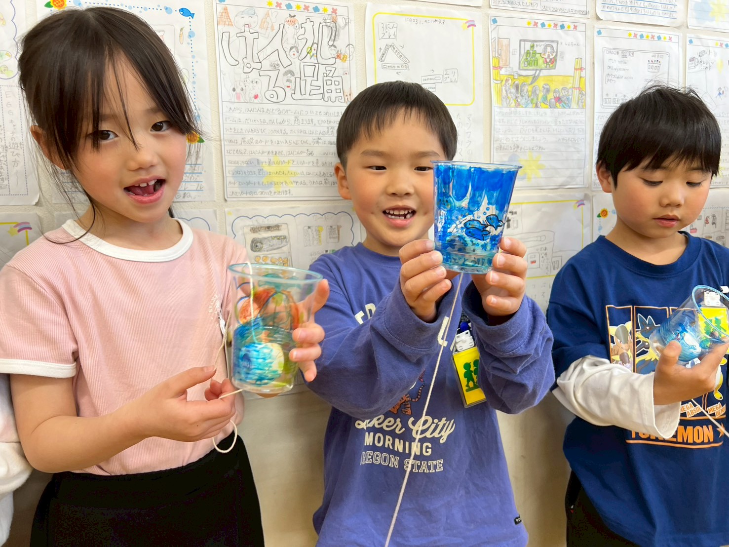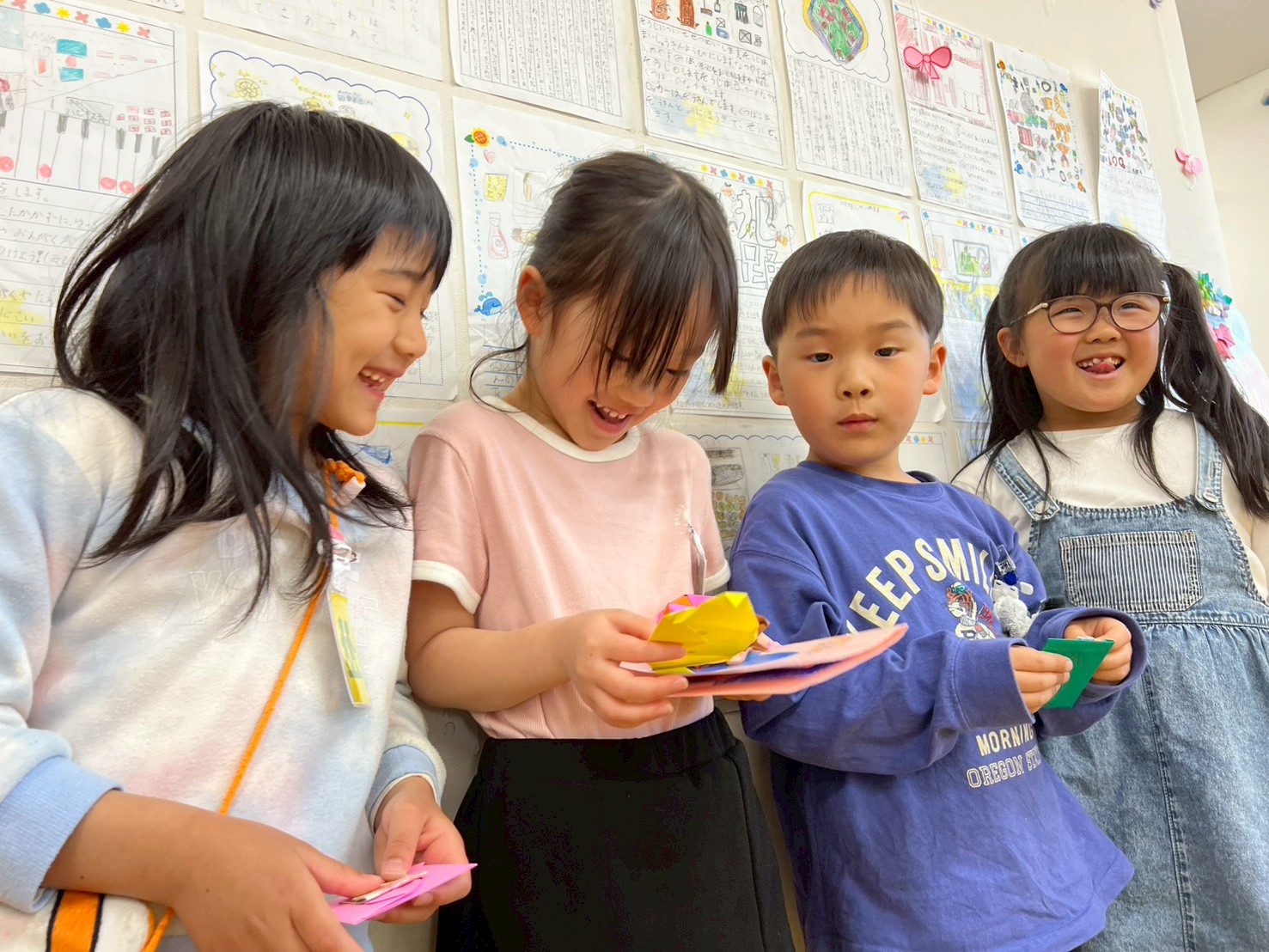 プログラム3つ目は、けん玉大会をしました。なんと、このけん玉も担当した子たちの手作りです。これにも1年生は「わーきれい!」と大喜び。好きなものを選んでもらって、けん玉に挑戦してもらいました。上手な子が多く、企画していた子たちも「すごい!」とびっくりしながらも、周りの子たちが盛り上げてくれ、1年生たちもとても楽しんでくれていました。