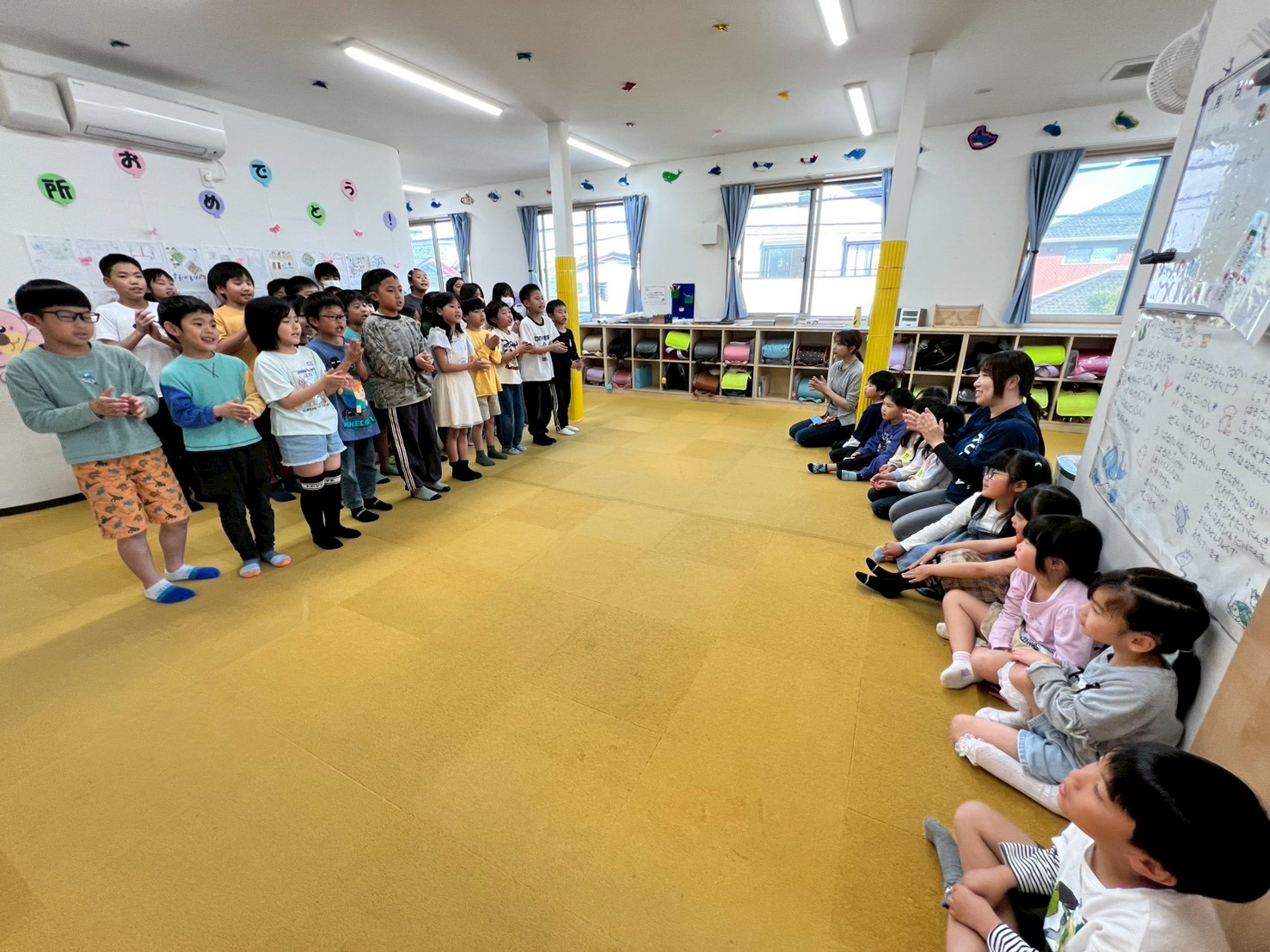 プログラム1つ目は、治田くじらの歌「くじらの治田🐳」を披露しました。練習の時は、声も小さく、なかなかフリも合わなかったけれど、たくさん練習を重ね、本番では一番大きな声で、フリも完璧に歌えました。1年生に感想を聞いてみると、「すごかった…!」「かっこいい」と大絶賛してくれました🎵